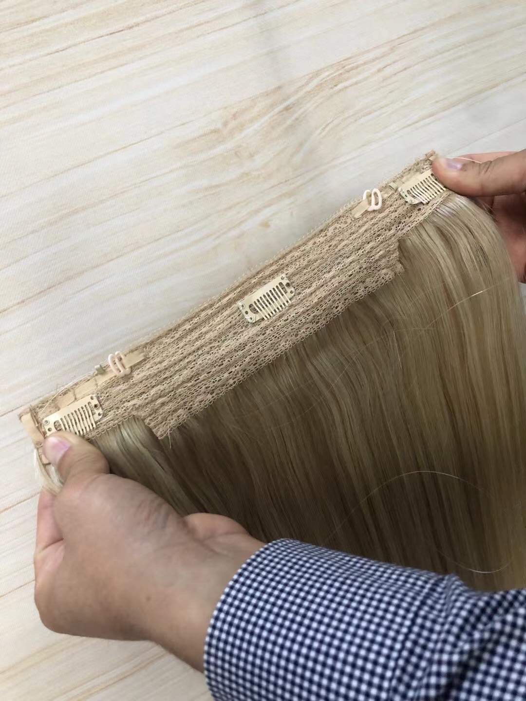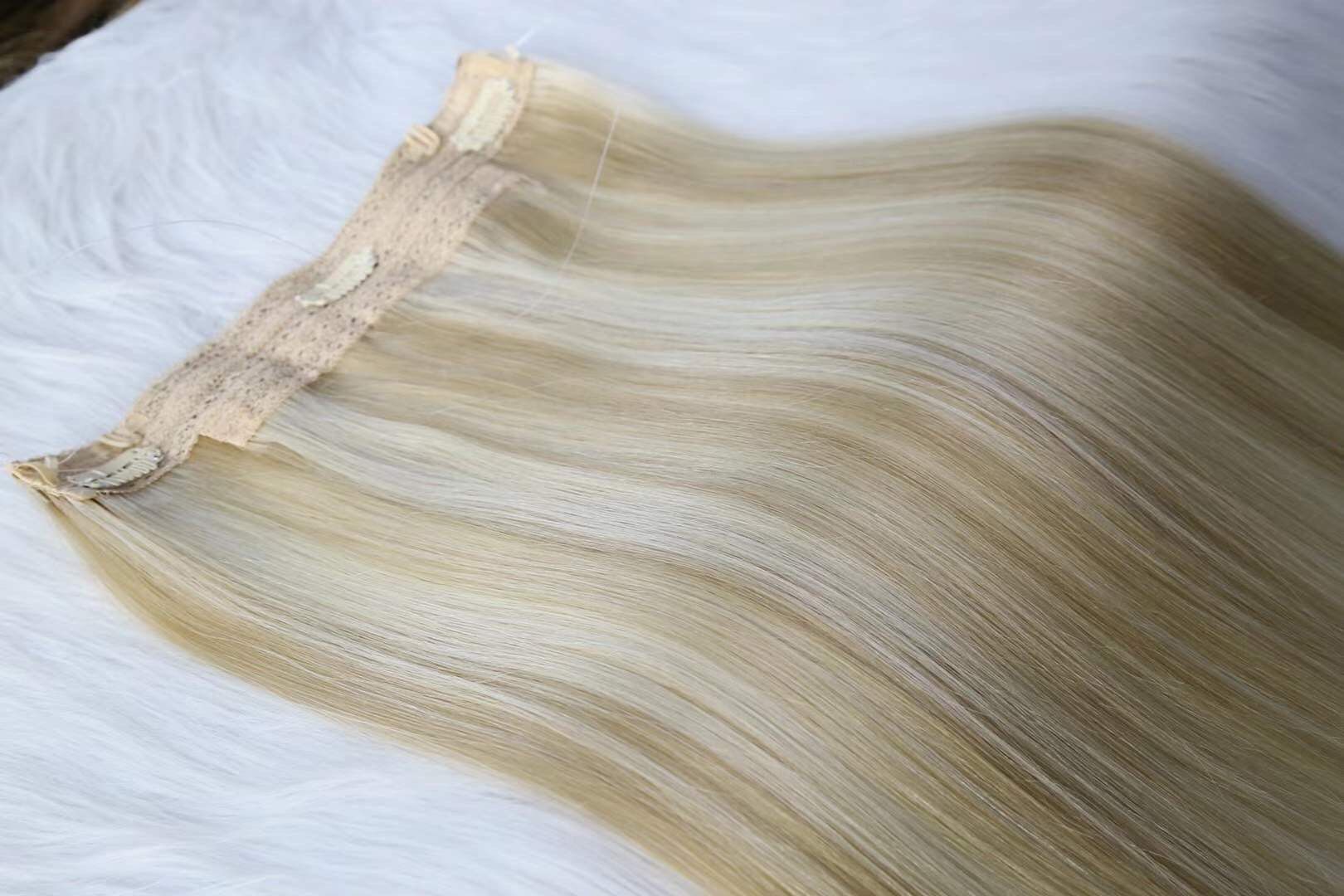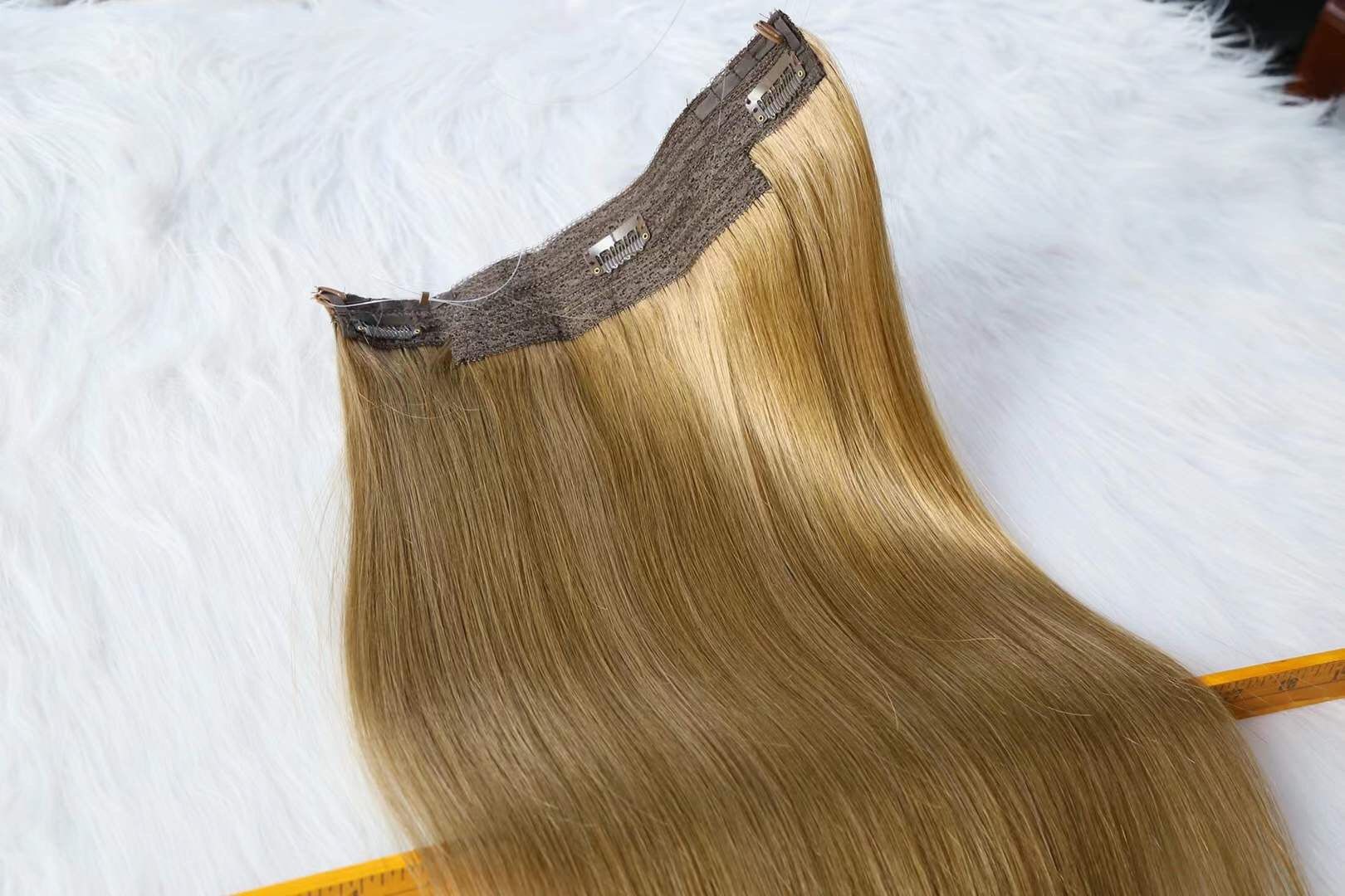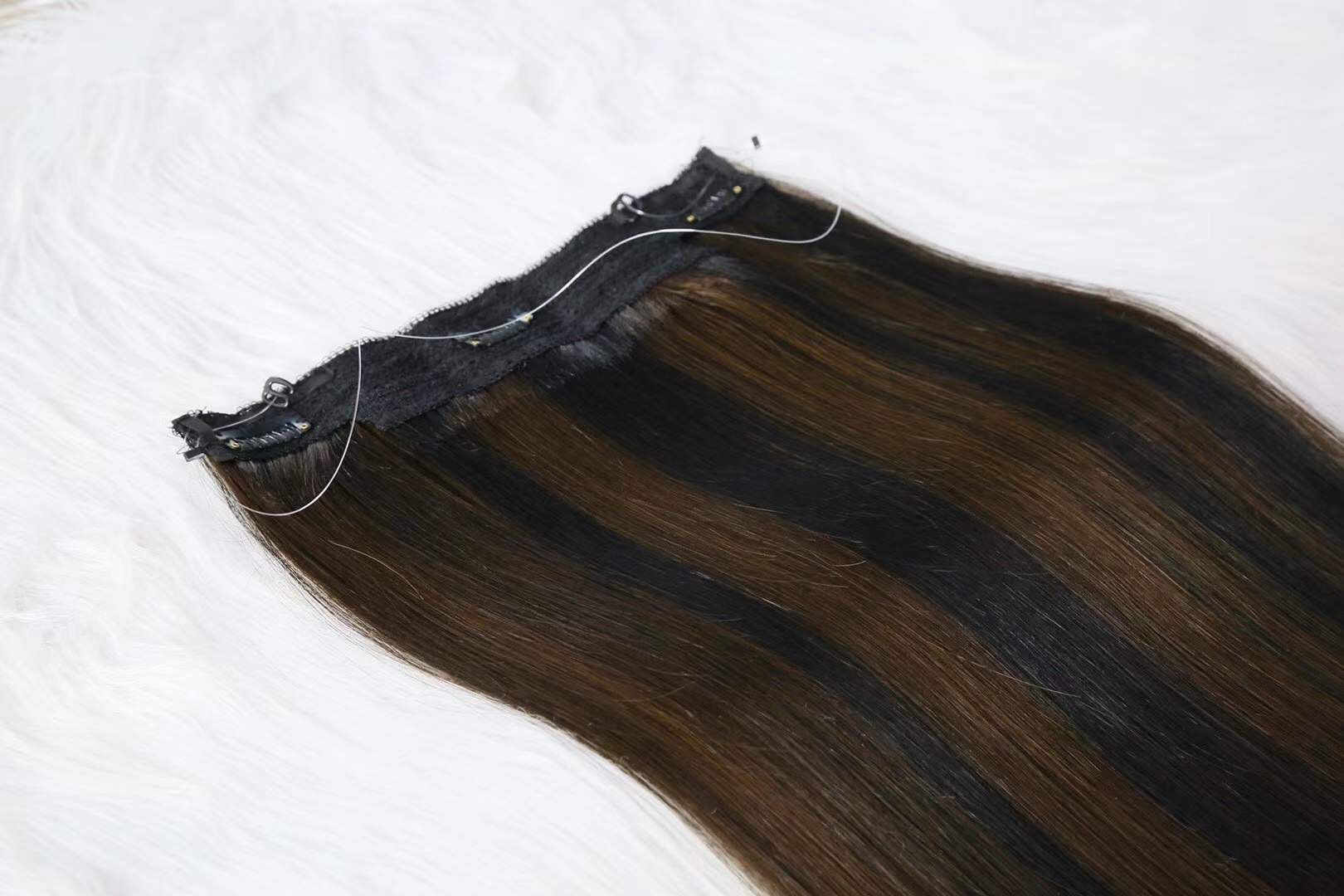 Double Drawn Halo Hair Extensions, Hairs are thick and full from roots to ends.